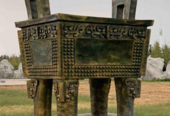 景區廣場擺放方形青銅鼎雕塑