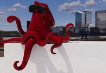 彩繪章魚雕塑,給公園草地增添可愛趣味