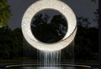主體采用不銹鋼雕塑工藝,打造出如液態銀浪般流暢且富有動感的曲面形態,表面鏡面拋光,可映射天光云影與周遭環境;背景輔以鏤空金屬網格構造的山水輪廓,虛實相生,層次豐富。雕塑坐落于圓形水臺,水紋因雕塑存在形成漣漪,金屬光澤與水光交相輝映,視覺上極具張力,同時通過 “水 - 雕塑 - 光影” 的互動,營造出沉浸式觀賞體驗。作為一件景觀雕塑,它以不銹鋼雕塑的現代材質語言,重新詮釋自然山水與生命律動的關系。設計師借不銹鋼的強塑造性與耐候性,讓流動的金屬 “浪形” 成為時間與空間的載體,既呼應景觀環境的開闊感,又以工業材質的冷冽質感碰撞自然山水的溫潤意象,形成強烈視覺沖擊。讓觀者在金屬浪濤與虛擬山影間,讀懂現代景觀中藝術、技術與自然的共生之美。